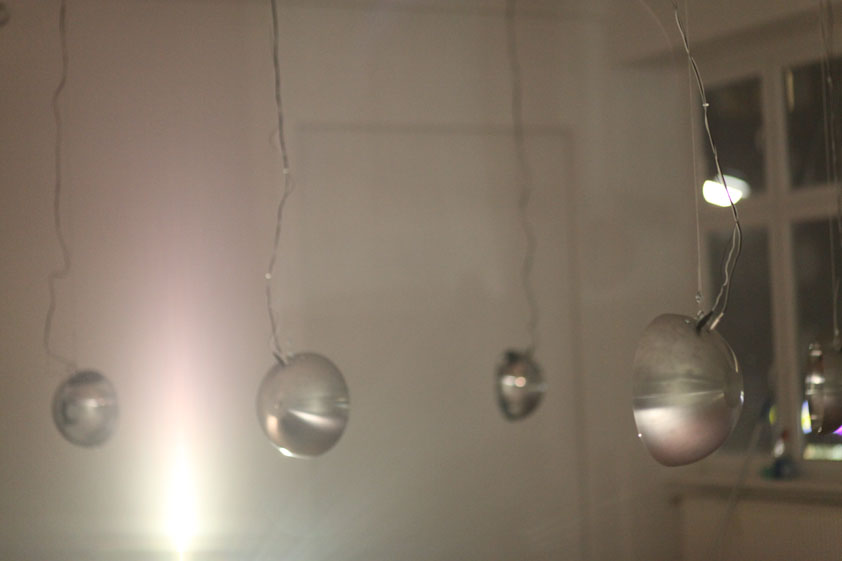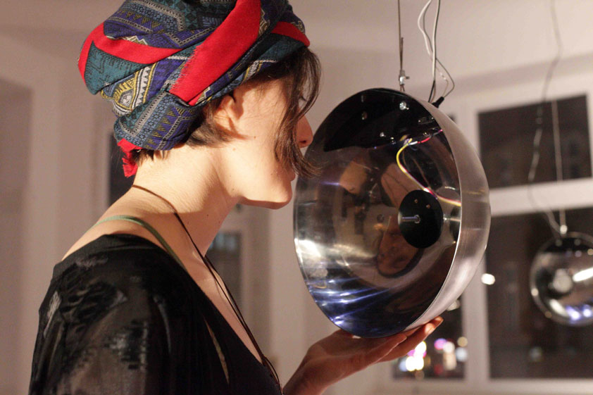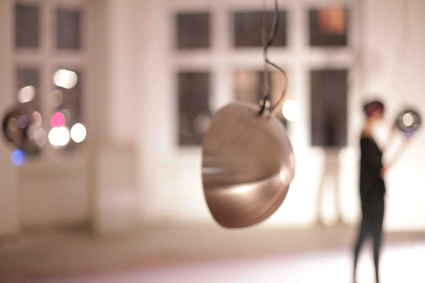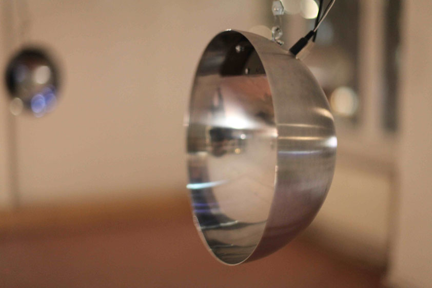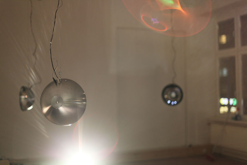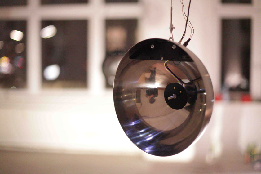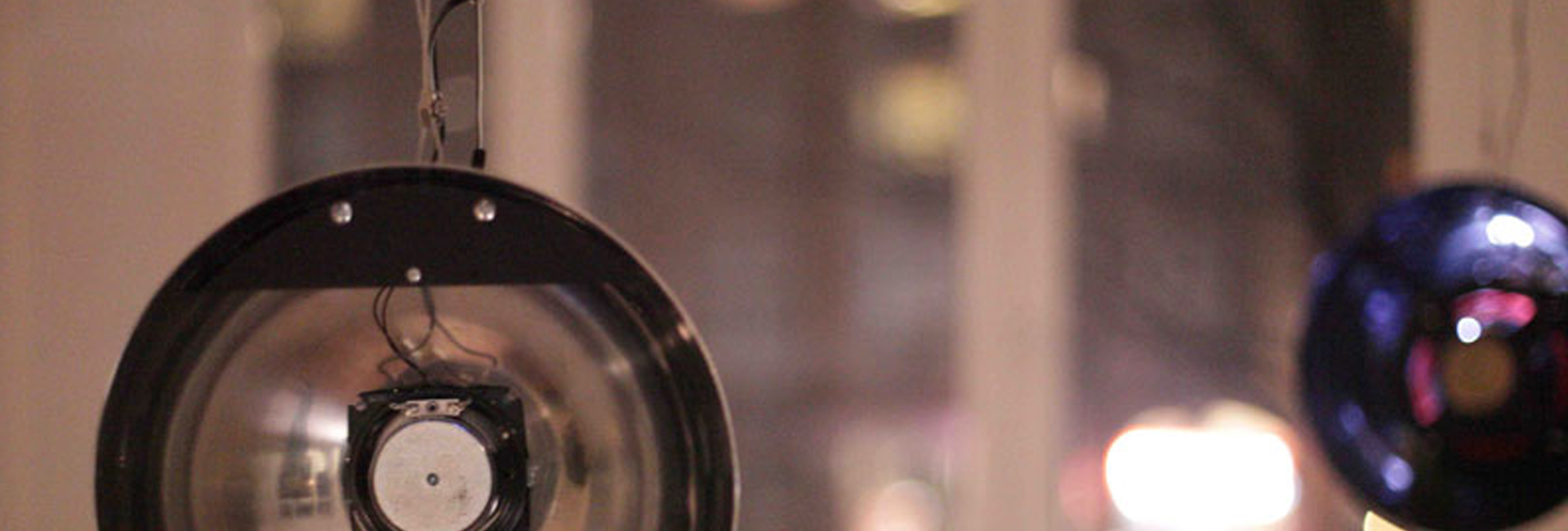 An immersive sound installation by Andre Wakko, Yair Elazar Glotman and Tommi koskinen Parabolic shapes resonate with frequencies, creating a network of sound that takes over the space, conversing and building on itself with sound, light and movement. Viewers are invited into the space, their bodies able to influence and interfere with the system's dialog. The feedback of sound and light excites and agitates itself until ending in organic entropy.