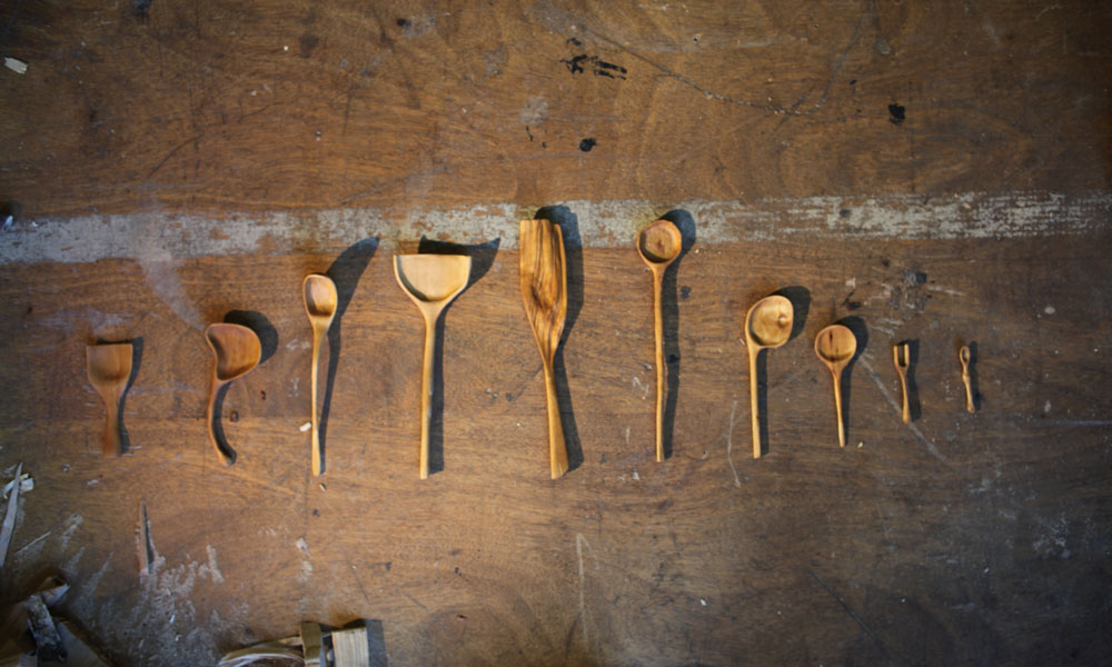 What could be simpler than a wood spoon. Although this common ground of simplicity is just an indicator that this amazing resource has been totally absorbed by our technological eye, suddenly surprises me as the most grandiose achievement of human kind, in which I find a way to experience an ancient discovery - hacking a wood log into a spoon. The wood spoon is so interesting in its cultural and philosophical aspect. It’s a common ground in all the cultures that had lived on earth. It’s hard to think of any civilization that didn’t have a wood spoon legacy. Wood used to be the basic resource for developing any kind of technology, and basically eating or preparing the food which is something totally basic. But it doesn’t stop right there. Many cultures had absorbed this object to express all kinds of forms and mes- sages. Even though we have an idea what a spoon is, this not a simple object at all and can be reconstructed in so many extended ways and still be recognizable.